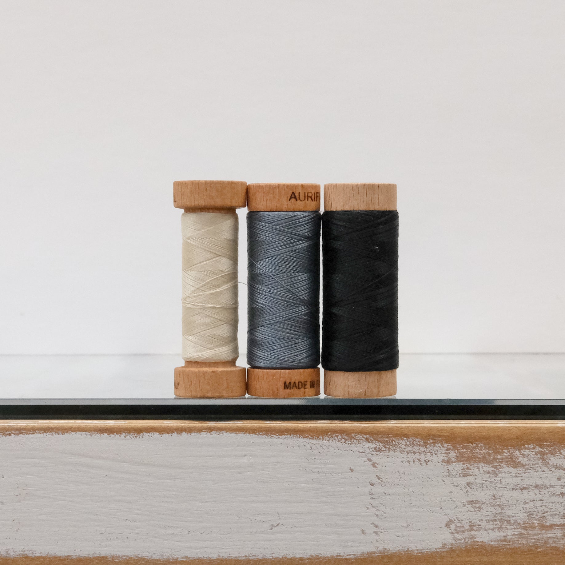 When it comes to thread, I suggest that you begin with 1-2 spools of the 80wt cotton Aurifil before buying lots of colors.