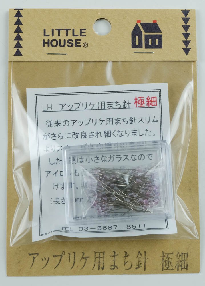 These 3/4" Applique Pins from Little House are fine and have a small glass head. They are a little bit flexible but not bendy which helps them to lay flat against your applique. I like them!Click through the photos and you'll see this pin next to a Clover 3/4" pin and it's pretty obvious which is finer.
