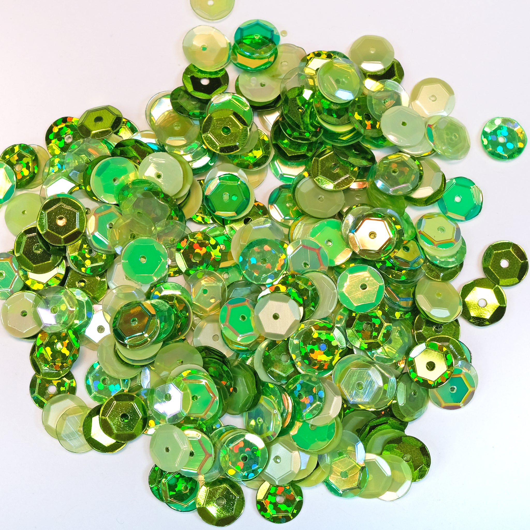 These are 8mm sequins, and here you can see the difference in scale: