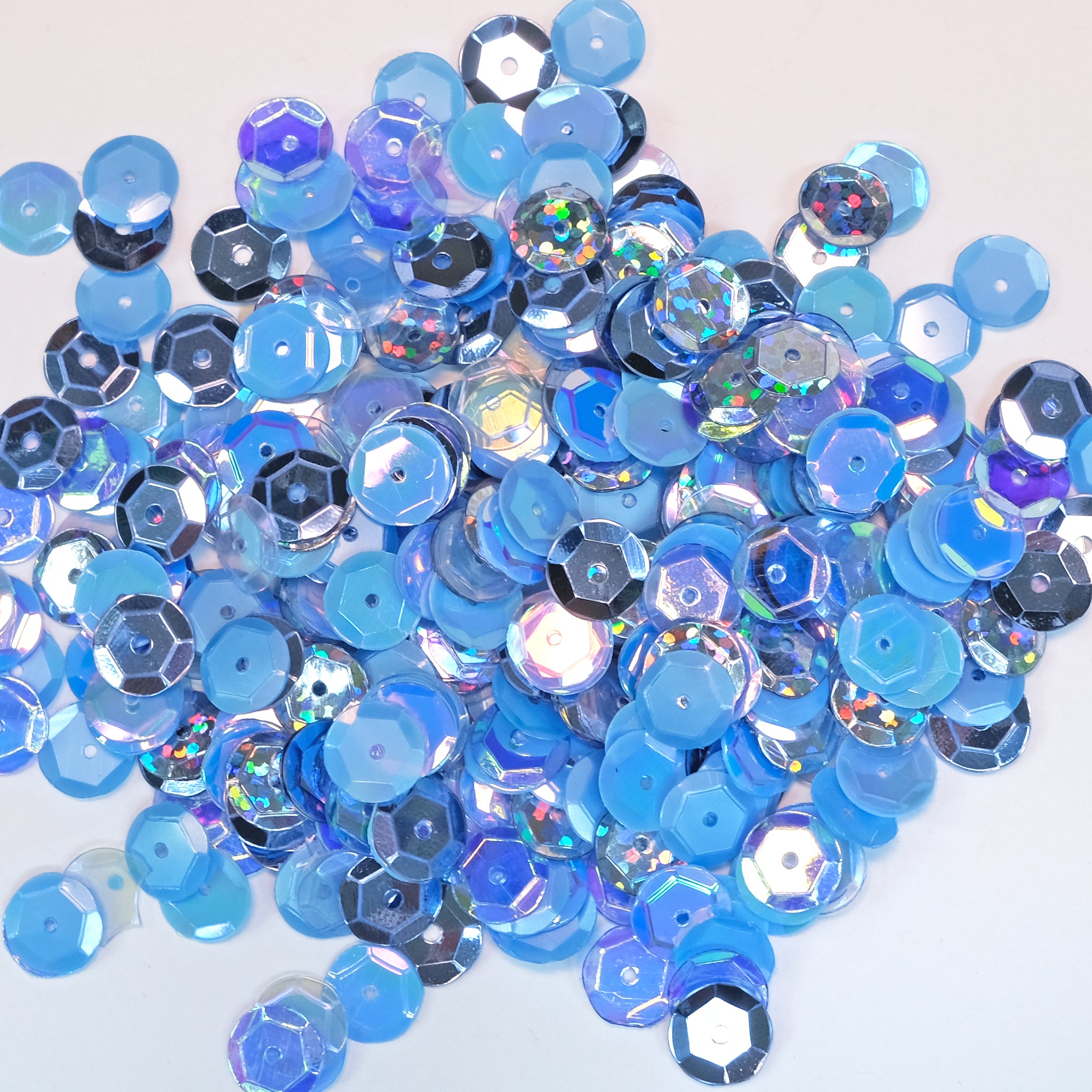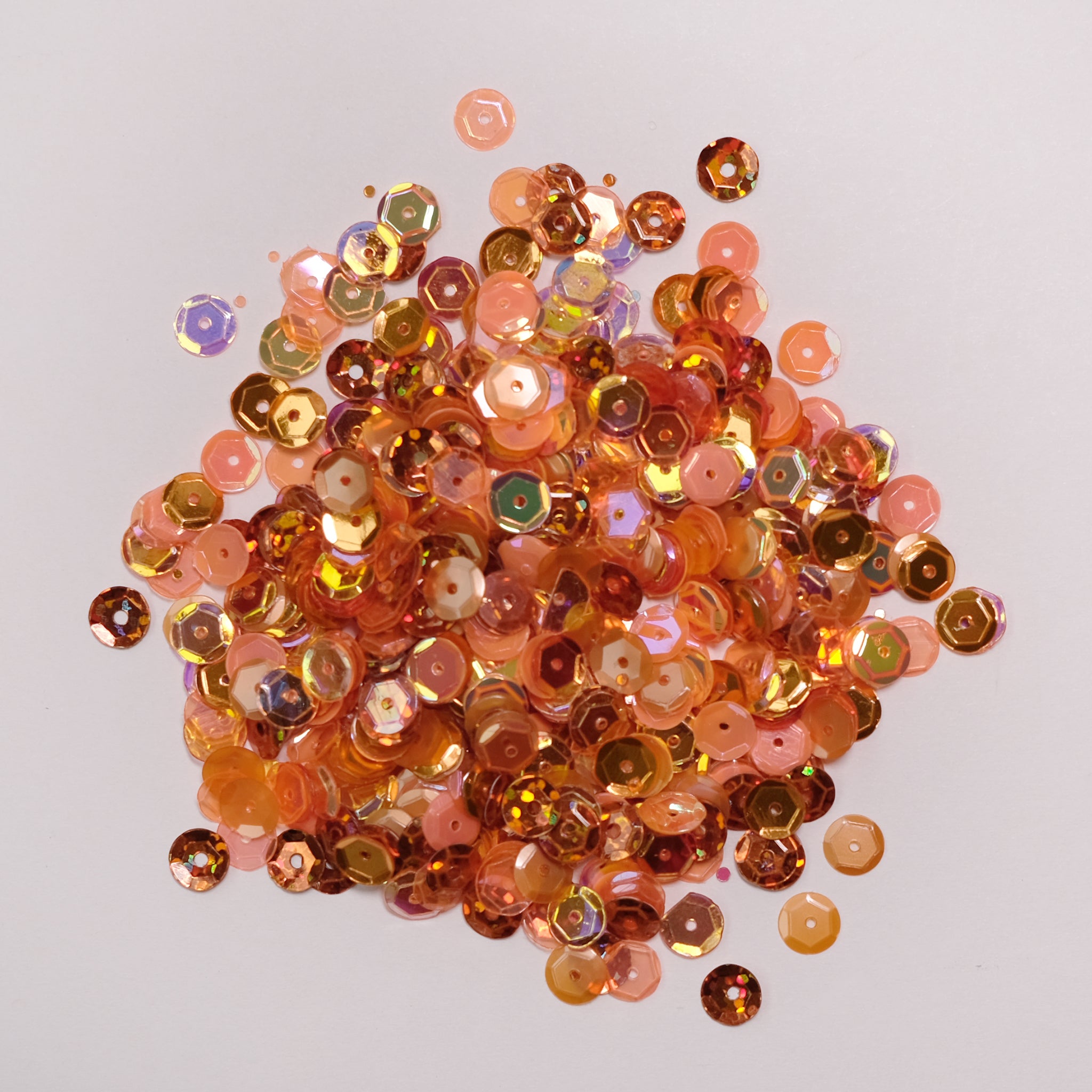 Each metal tin holds 8mm lightly cupped sequins in a blend of specific colors. They come packaged in a 2" x 2" x 1" square metal tin with a window so you can see what's inside.