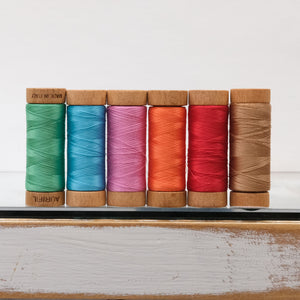 Aurifil's 80wt cotton is the finest cotton thread I've found. Because it is a fine thread, you may find it better to work with shorter lengths of thread to cut down on fraying and knotting as you work. I use Thread Tamer to condition the thread.This is the best thread I've found for hand appliquéing fine cotton fabrics, like cotton lawns. In this set of six spools you'll find thread colors 2860, 5005, 2479, 1154, 2250, 2340.
