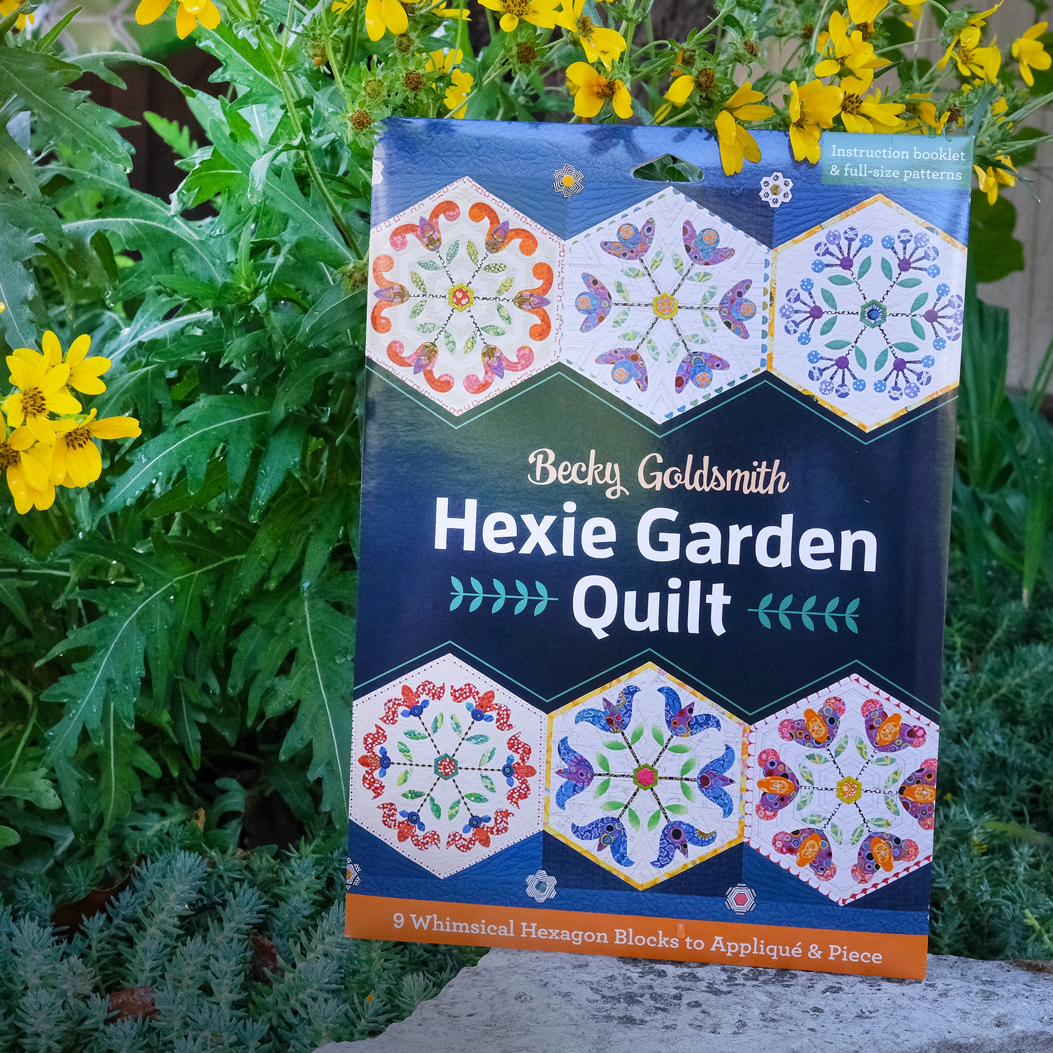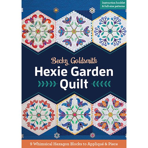 You will definitely enjoy appliqueing these happy, hexagonal blocks. Each individual flower is appliqued separately and then trimmed to a wedge. The wedges come together to create graphic, floral designs that have a distinctly modern flair. Individual template shapes are included for each applique shape which makes prep work fast and easy.