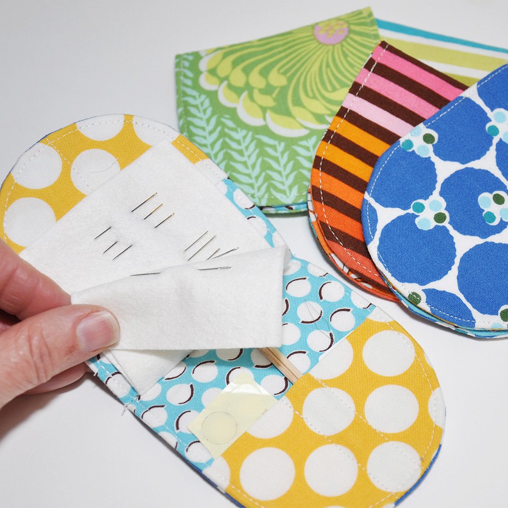 You will love this needle caddy! It's cute, easy to make, and has little pockets to hold adhesive thimbles, flat needle threaders, toothpicks, and more. Two felt 'pages' hold lots of needles. What's not to love?!